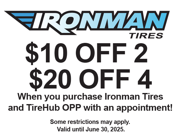 When you purchase Ironman Tires and TireHub OPP with an appointment.