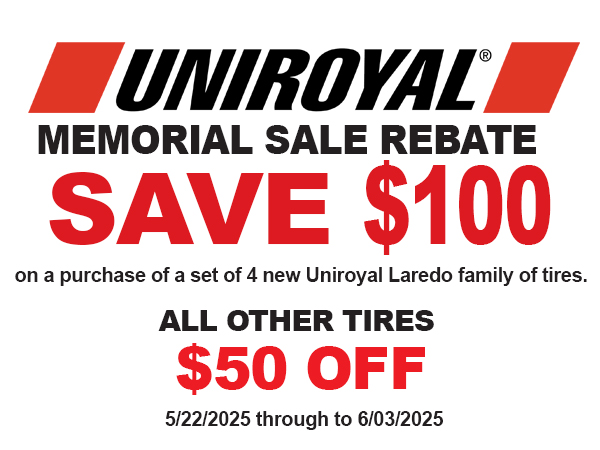 All Other Tires SAVE $50 OFF a set of 4 Uniroyal tires